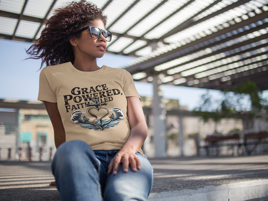 Embrace your faith journey with our "Grace Powered, Faith Led" t-shirt, designed...